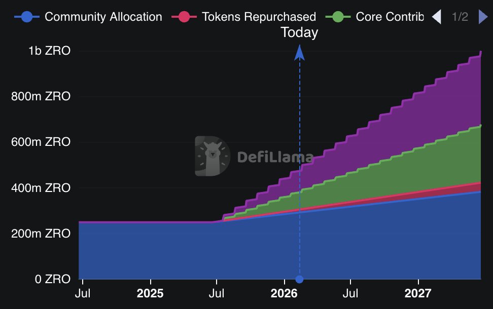 A csatolt ábrán jól látszik, hogy jelenleg 300 millió ZRO van forgásban, így a projekt piaci kapitalizációja valamivel 625 millió dollár felett található. Amennyiben tényleg feloldásra kerülnek ezek a tokenek, úgy a piaci kapitalizáció – változatlan árfolyam esetén – több mint egymilliárd dollár lesz.