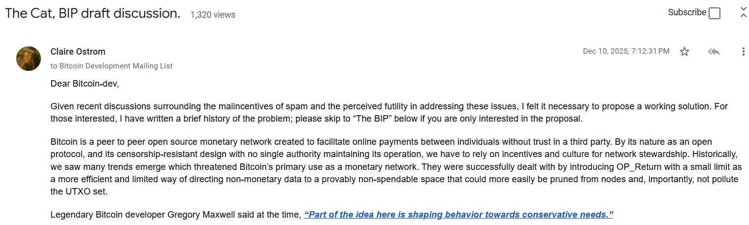 Bármennyire is úgy gondolják sokan, hogy ez még a nagyon távoli jövő, azt mindenki elismeri, hogy a kvantumszámítástechnika komoly veszélyt jelenthet a Bitcoinra és a kriptoszektorra úgy általában, mivel biztonsági fenyegetést jelent az alapjául szolgáló kriptográfiára-adatvédelemre. Most pedig egy újabb fenyegetés merült fel. Ez a komoly vitát kiváltó, ellentmondásos „Cat” Bitcoin Fejlesztési Javaslat (BIP), amely arról szól, hogy a milliónyi, bevésésekhez kapcsolódó kimenetet véglegesen elköltethetetlennek kellene-e nyilvánítani. A tervezet célja a blokklánc túlzott méretével kapcsolatos aggodalmak kezelése, miközben alapvető kérdéseket vet fel a tulajdonjogokról és a Bitcoin alapelveiről.