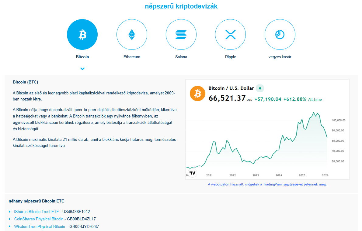 A magyar termékfókusz alapján ez minősül a legszélesebb ETF/ETP-palettának, MiFID-keretek között elérhető, nem igényel natív kriptovaluta-váltást, és akár személyi jövedelemadó-mentes is lehet.