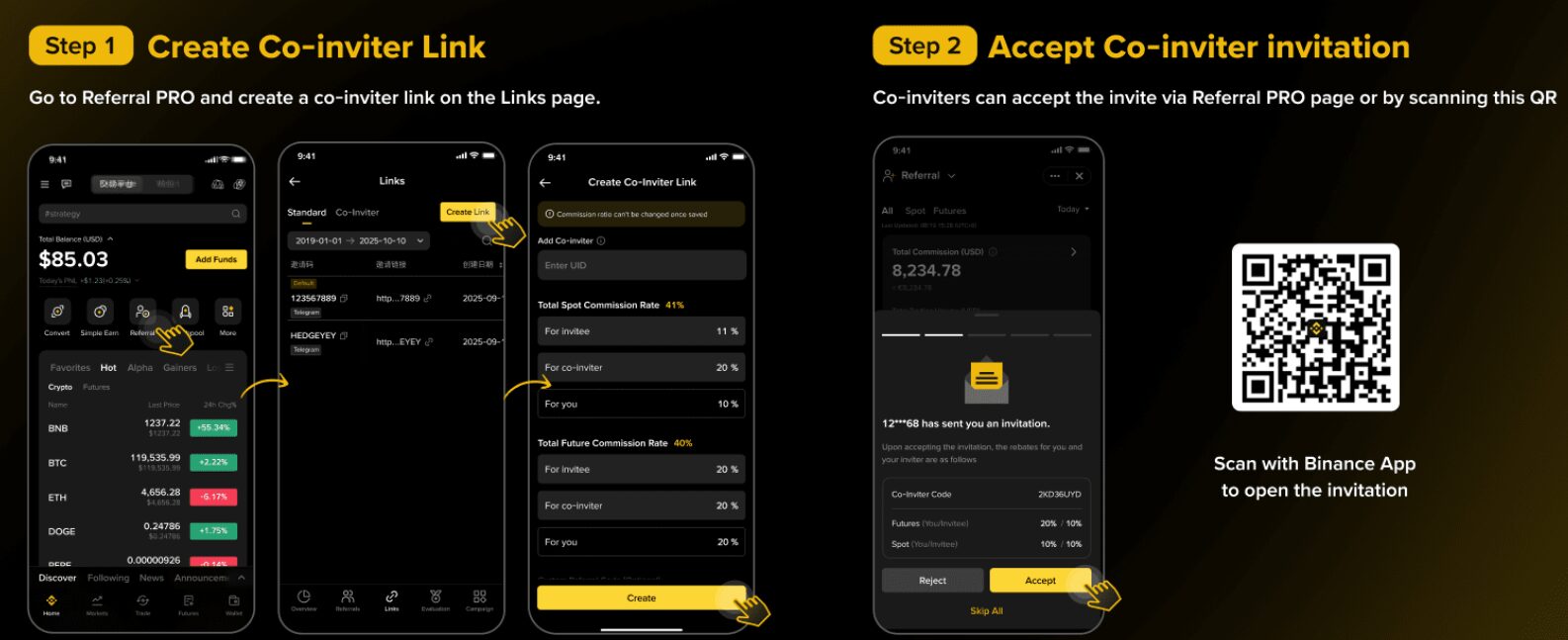 Az aktuálisan közel 297 millió felhasználóval bíró Binance a világ legnagyobb kriptotőzsdéje és Magyarországon is kifejezetten sokan tagjai a platformnak. 2025. október 22-étől már ők is használhatják a Binance Affiliate rendszerének újabb funkcióját, a Binance Co-Inviter funkciót. A program lehető teszi, hogy a meglévő vagy új Affiliate partnerek másokat (ők a Co-Inviterek) is bevonjanak a felhasználók toborzásába. Segítségével tovább növelheti a tőzsde a felhasználói bázisát, miközben újabb bevételi lehetőségek válnak elérhető az Affiliate partnerek számára.