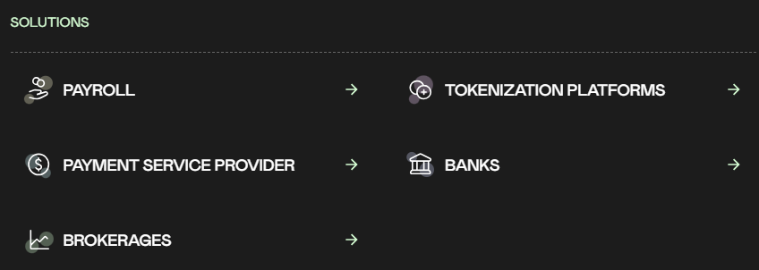 A vállalat teljes körű szolgáltatásokat kínál, amelyek kiterjednek a kriptovaluták és stabilcoinok kereskedelmére, letétkezelésére, stakelésére és elszámolására. Tokenizációs eszközöket és fiatvaluta be- és kikapcsolási lehetőségeket is biztosít, lehetővé téve a digitális és a hagyományos valuták közötti zökkenőmentes átváltást.