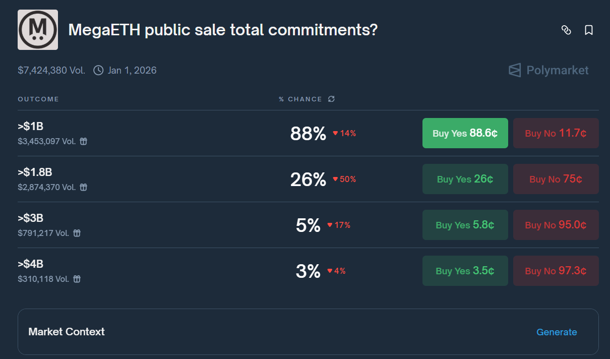 Az egyik legnagyobb fogadóportálon (Polymarket) a felhasználók 88%-os eséllyel gondolják azt, hogy több mint 1 milliárd dollárt sikerül majd összeszedni a nyilvános aukció során a csapatnak.