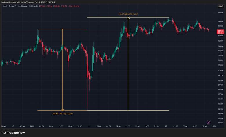 Két nappal ezelőtt Trump vámmal kapcsolatos bejelentése jelentős likvidációt idézett elő a kriptopiacon. 50-60%-os zuhanásokat is láttunk, amelyeket a piac részben már korrigált. A Zcash azonban a 40%-os napi esést követően közel 100%-os emelkedést produkált alig egy nap alatt, majd a makrogazdasági bizonytalanságok miatt 270 dollárig tesztelte vissza árát.