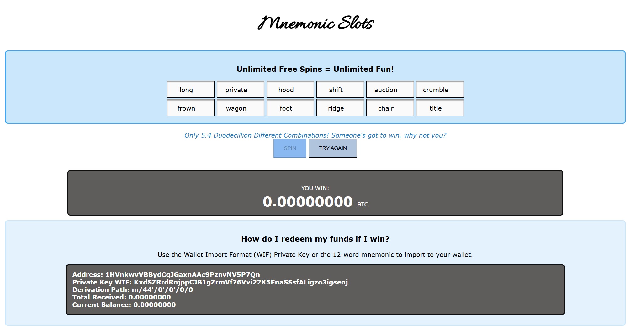 A seed phrase nyerőgép így inkább gondolatkísérlet és szemléltető eszköz, mint valódi lehetőség a meggazdagodásra.