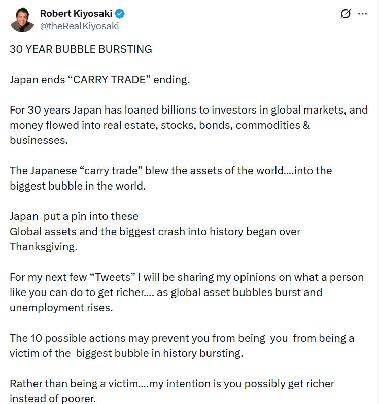 Vajon tényleg akkora hatása lesz a japán carry trade leépülésének, mint Kiyosaki jósolja?