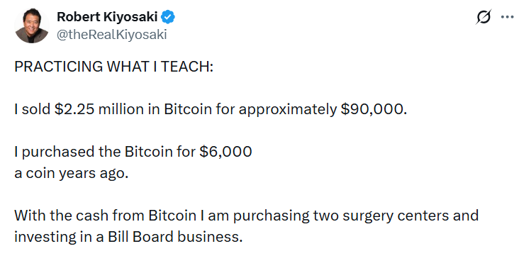Kiyosaki eladta a Bitcoinjait – majd pár nap múlva világvége‑jóslattal tért vissza