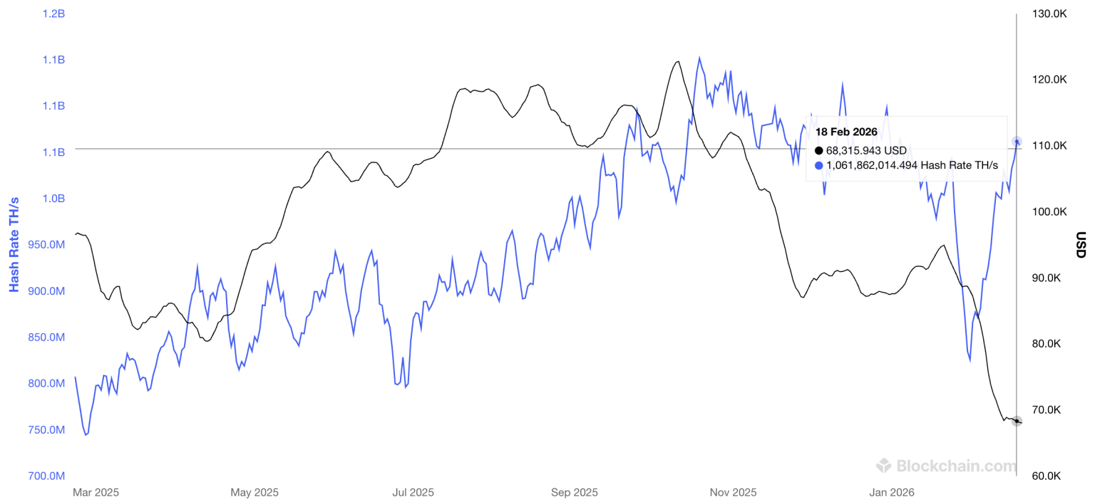hashrate-jének megugrása első ránézésre azt sugallja, hogy a bányászok bizalma erősödik, vagyis a hálózat gyorsan alkalmazkodik a sokkhoz. A korábbi példák alapján ez gyakran járt együtt későbbi árfolyam-felpattanásokkal, de önmagában nem tekinthető megbízható, rövid távú árfolyam-előrejelzésnek.