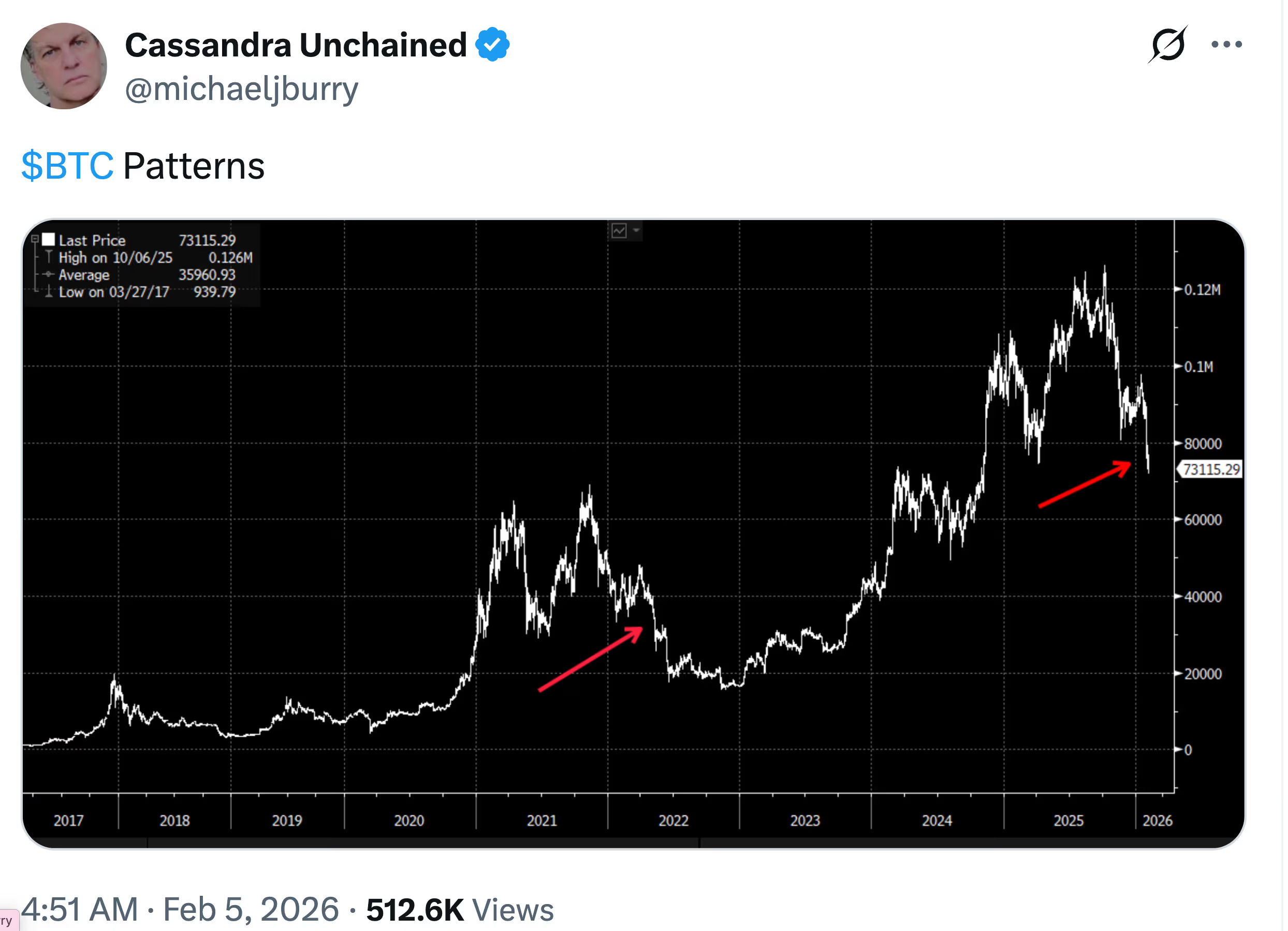 Michael Burry kimaradt a bitcoin emelkedéséből – most újabb összeomlástól tart