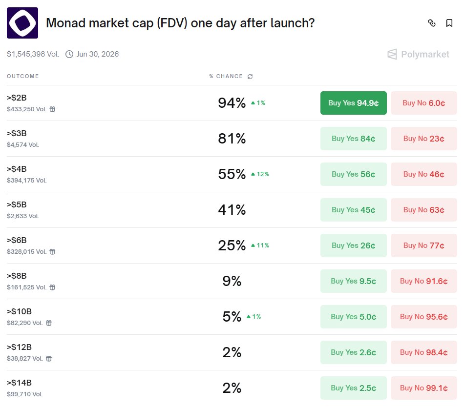 Az indulás utáni napon, a token várható FDV-je (fully diluted valuation) akár 6 milliárd dollár is lehet, amely a piaci ár alapján 0,06 dolláros árfolyamot jelenthet. A Polymarket szavazói jelenleg a legnagyobb esélyt (94%) a kétmilliárd dolláros értékelésre látják.