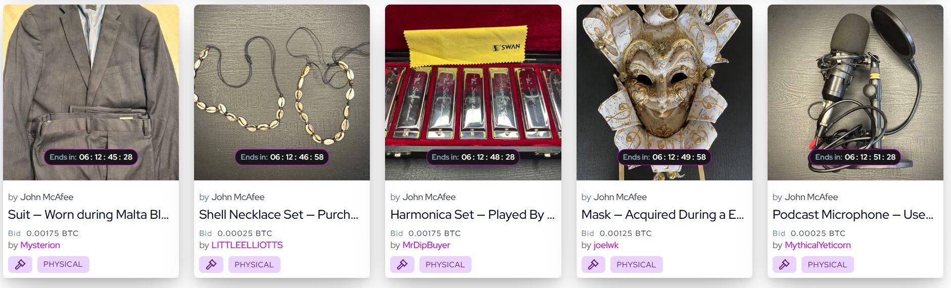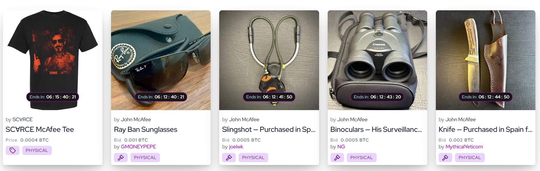 Halála után is bőven voltak történések McAfee körül, volt aki vitatta, hogy egyáltalán meghalt, mások filmet terveztek készíteni róla, felesége pedig AI tokent indított. Most pedig érdekes kollekció bukkant fel a Scarce City Bitcoin-natív aukciós piactéren. A leginkább „szabadság-javaknak” nevezett tárgyakra (mint kriptós művészeti alkotások) specializálódott platformon tárgycsomagra lehet még pár napig licitálni, ami „John McAfee Collection” néven fut. Ez McAfee személyes tárgyaiból tartalmaz párat, szám szerint 14-et. A kollekció érdekes elemeket foglal magában, többek között McAfee útlevelét, egy kagylós nyaklánc‑szettet, megfigyeléshez használt távcsövet, egy szájharmonika‑készletet, az üzletember podcast‑mikrofonját, Ray Ban napszemüvegét, egy csúzlit, egy kést, sőt még egy elektromos börtönborotvát is.