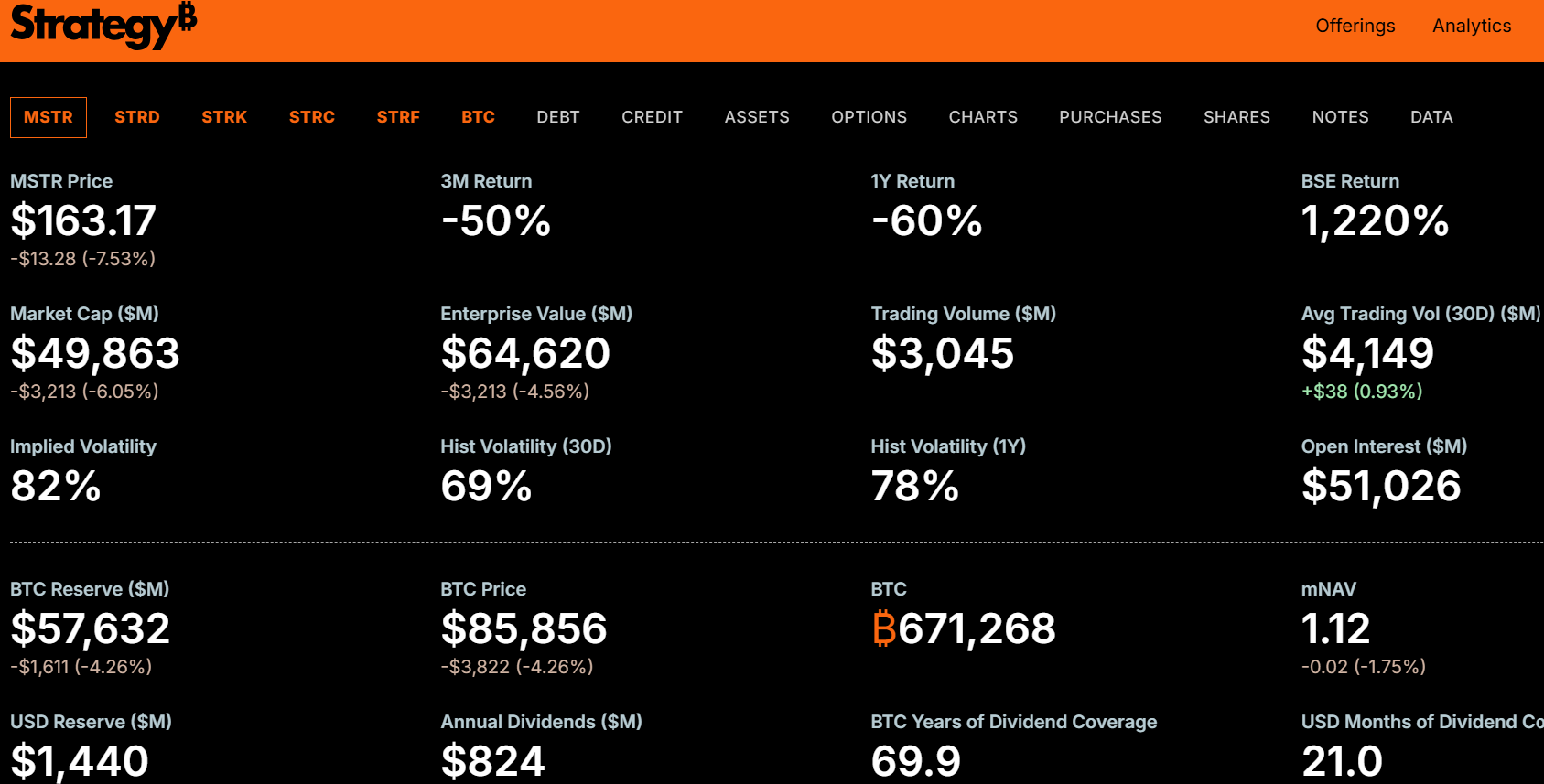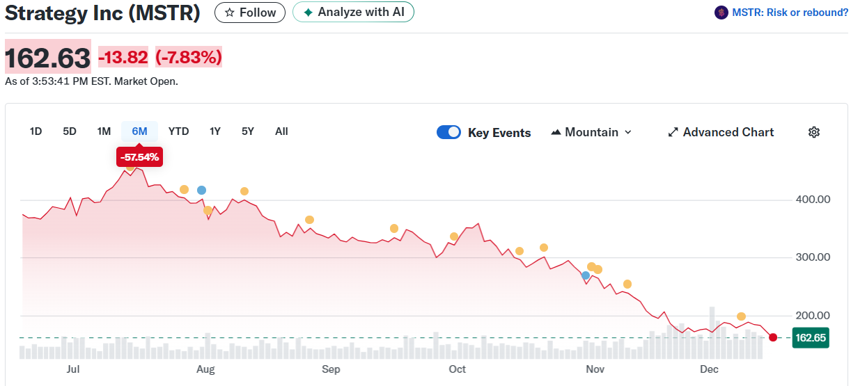 A Bitcoin is esett az elmúlt két hónapban, de nem olyan meredeken; a BTC ára az elmúlt 30 napban körülbelül 7%-kal esett, ami több mint 29%-os csökkenést jelent az október eleji 126000 dollár feletti új csúcshoz képest. A Strategy a hónap elején 1,4 milliárd dolláros készpénztartalékot hozott létre, hogy kifizethesse az osztalékokat és elkerülje bármennyi Bitcoin potenciális eladását. Bár a vállalat vezetői elismerték, hogy végül szükségük lehet a kriptovaluta eladására a jelentősebb visszaesések idején. A Cantor Fitzgerald elemzői nemrégiben alaptalannak minősítették a befektetők aggodalmait a Strategy Bitcoin-vásárlási stratégiájával kapcsolatban, különös tekintettel arra a félelemre, hogy a vállalat nem vásárolt a legnagyobb kriptovaluta árfolyamának esése alatt. Több elemző azonban lejjebb vitte az árcélokat, hivatkozva a Strategy MSCI-indexekből való esetleges kizárására, mint negatív tényezőre. A múlt héten a cég nyilvános levelet írt az MSCI-nek, amelyben azt állította, hogy a kriptotartalékot képző cégek indexekből való kizárása potenciális nemzetbiztonsági fenyegetést jelentene, és visszavetné Trump elnök kriptobarát politikáját.