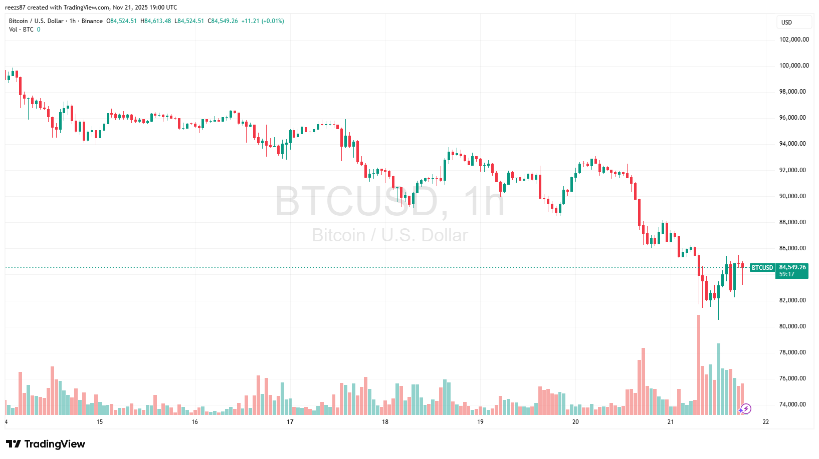 A helyzet tovább romlott a héten, péntek reggel pedig elérte a heti mélypontot, alig 80 000 dollár felett a Bitcoin – április óta nem járt ennyire alacsonyan a BTC ára.