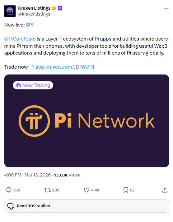 A Pi Network ökoszisztéma számára jelentős mérföldkőnek számít, hogy a Kraken kriptotőzsde hivatalosan is elindította a Pi Network token ($PI) kereskedését 2026. március 13-án, mindössze egy nappal a közösség éves mai napi Pi-napi ünnepsége előtt.