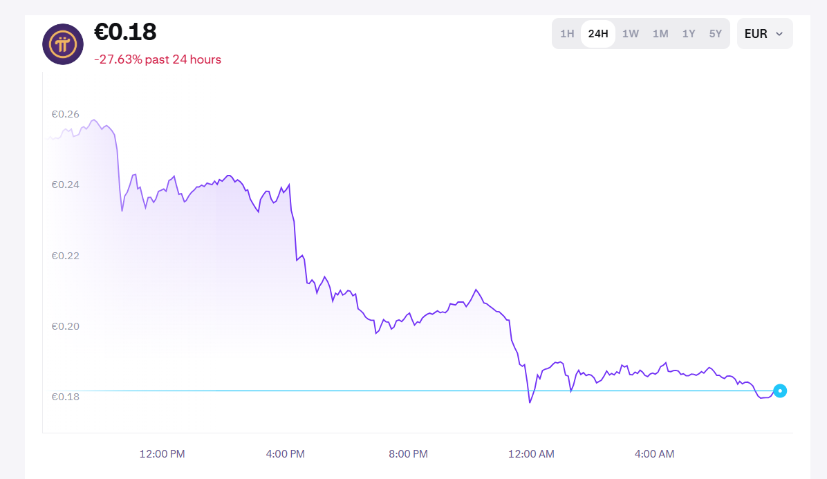 • Árvolatilitás: 2025 negyedik negyedévében és 2026 elején a Pi token jelentős ingadozásokat mutatott, beleértve a korábbi csúcsárhoz képest a nagyjából 95%-os esését is.
