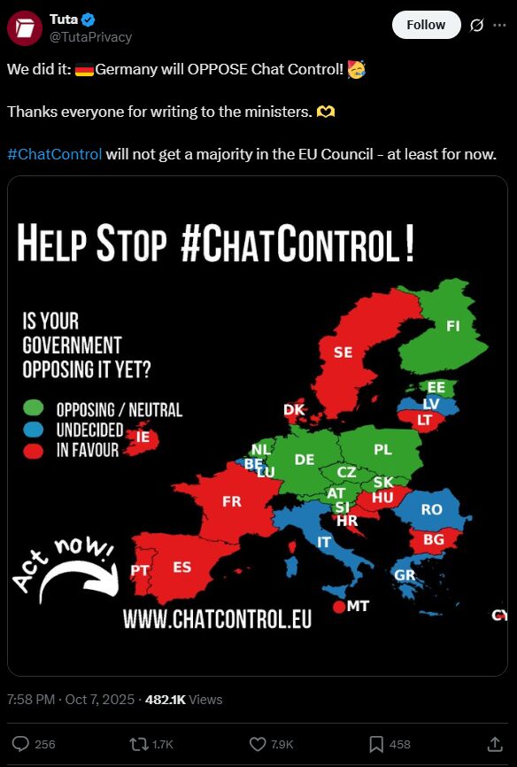 Az Európai Unió hamarosan szavaz a titkosított üzenetküldő alkalmazások megfigyeléséről szóló, vitatott „Chat Control” törvényjavaslatról, amely alapjaiban korlátozná a magánszférát. A civil szervezetek és a blokklánc alapú alkalmazások hevesen ellenezték a javaslatot, és úgy tűnik, az EU legerősebb tagállama, Németország is elutasítja azt.
