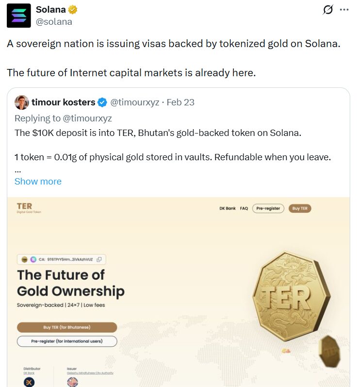 A célja a projektnek a bizonyos minimum tőkével bíró digitális nomádok vonzása, plusz a Gelephu Mindfulness City néven futó övezet fejlesztése (amiről és finanszírozásáról itt írtunk bővebben). A Solana X-fiókja is örömmel posztolta a hírt, ami nagyon jókor jön a küszködő Sol ökoszisztéma számára.