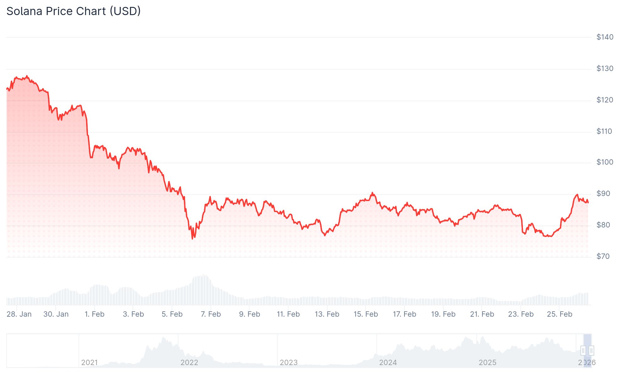 A cikk írásakor a SOl árfolyama 87,3 dollár körül mozgott, ami egy hónap alatt nagyjából 30%-os esést jelent.