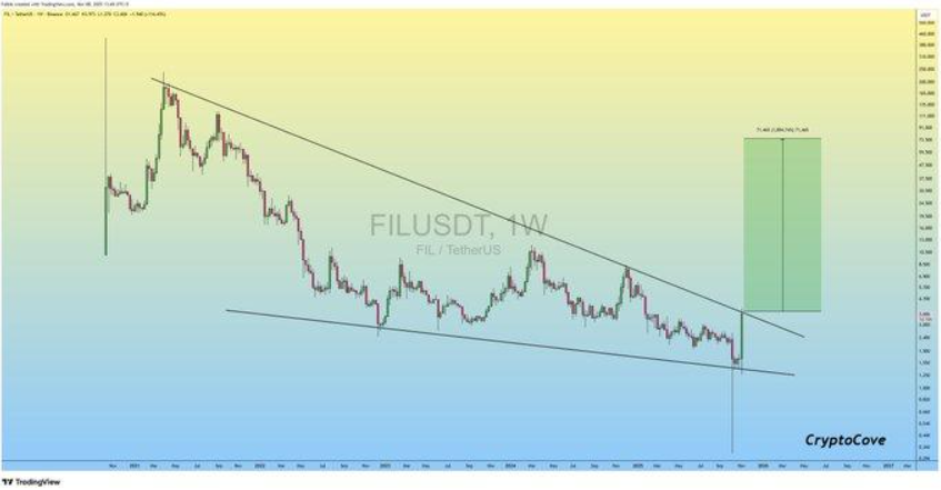 És jönnek olyan hírek, amelyek lökést adhatnak a korrekció közben az emelkedő trend ismételt visszatéréséhez. A Filecoin (FIL) nemrég bejelentette, hogy egyszerű tároló hálózatról blokkláncalapú felhőszolgáltatásra kíván átállni. A projekt november 8-án mutatta be új weboldalát, a Filecoin Cloudot, és megkezdte a várólistára való felvétel iránti kérelmek elfogadását az on-chain felhőszolgáltatás igénybevételéhez. Ez egy olyan új generációs felhőszolgáltatás lesz, amely teljesen decentralizált módon, a blokkláncon fut. Ez nem csupán fájlok tárolását jelenti, hanem számítási kapacitás biztosítását, alkalmazások futtatását közvetlenül a hálózaton valamint adatok feldolgozását és elérését okosszerződéseken keresztül. A Filecoin eddig főként adatmegőrzésre fókuszált. Az új irány lehetővé teszi, hogy alkalmazások és szolgáltatások is futtathatók legyenek a hálózaton.