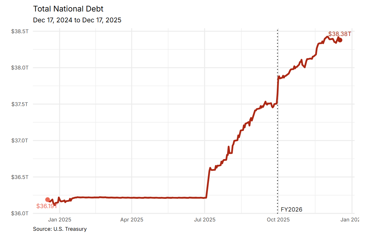 Ahogy megérkezett az új év, némi lendületet kapott a Bitcoin ára is, aktuálisan 92 ezer dollár környékén mozog a coin árfolyama. Ez hét nap alatt 4%-os emelkedést jelent. De nem csak a legnagyobb kriptovaluta árfolyama kapott lendületet, hanem az amerikai államadósság is. Az amerikai állam tartozása 38,5 billió dollárra emelkedett (forintban kimondhatatlan számról, 12.655 billió forintról van szó), ami a legmagasabb összeg, amellyel az ország valaha is tartozott hazai és külföldi hitelezőknek. Az államadósság több mint 70%-át belföldi hitelezőktől vette fel az állam, míg a többi külföldi hitelezőktől származik, elsősorban Japántól, Kínától és az Egyesült Királyságtól.