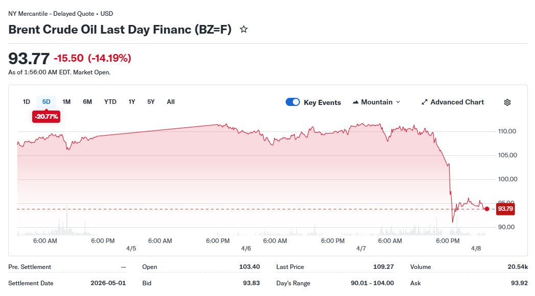 Irán helyzeti előnye szempontjából kulcsfontosságú volt, hogy a 2025 decembere óta duplájára emelkedő olajárakat gyorsan leverjék, mivel ez árt Trump népszerűségének is, és világszintű problémákat okozhat az ellátási láncokban. Mind a Brent-, mind a Crude-típusú olaj 15-15%-ot esett jelenleg pedig 93-95 dolláron kereskednek.