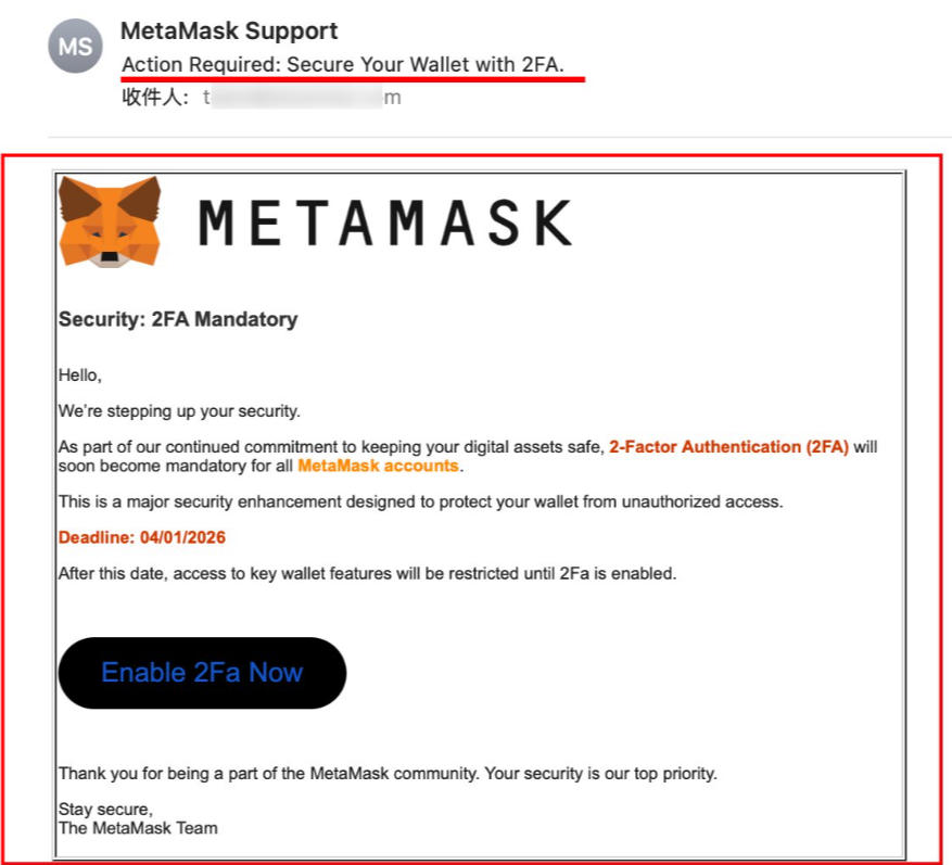 A SlowMist figyelmeztetést adott ki egy kifinomult phishing típusú csalásra, amely hamis kétfaktoros hitelesítési (2FA) oldalakat használ a MetaMask helyreállítási kulcsok ellopására. Bár 2025-ben a legtöbb adatforrás szerint az adathalász támadásokból származó veszteségek 83%-kal, 83,85 millió dollárra csökkentek (a korábbi 494 millió dollárról), a támadók most már újabb, még profibb taktikákat alkalmaznak. A kínai székhelyű kiberbiztonsági vállalat biztonsági igazgatója arról posztolt, hogy az új támadás a most már Bitcoint is integráló MetaMask biztonsági felületét utánozza, megtévesztő domainneveket használva, amelyek nagyon hasonlítanak az eredeti platformhoz. Így a felhasználók azt hiszik, hogy a szokásos biztonsági folyamatot hajtják végre, miközben valójában átadják a kritikus tárcaadataikat.