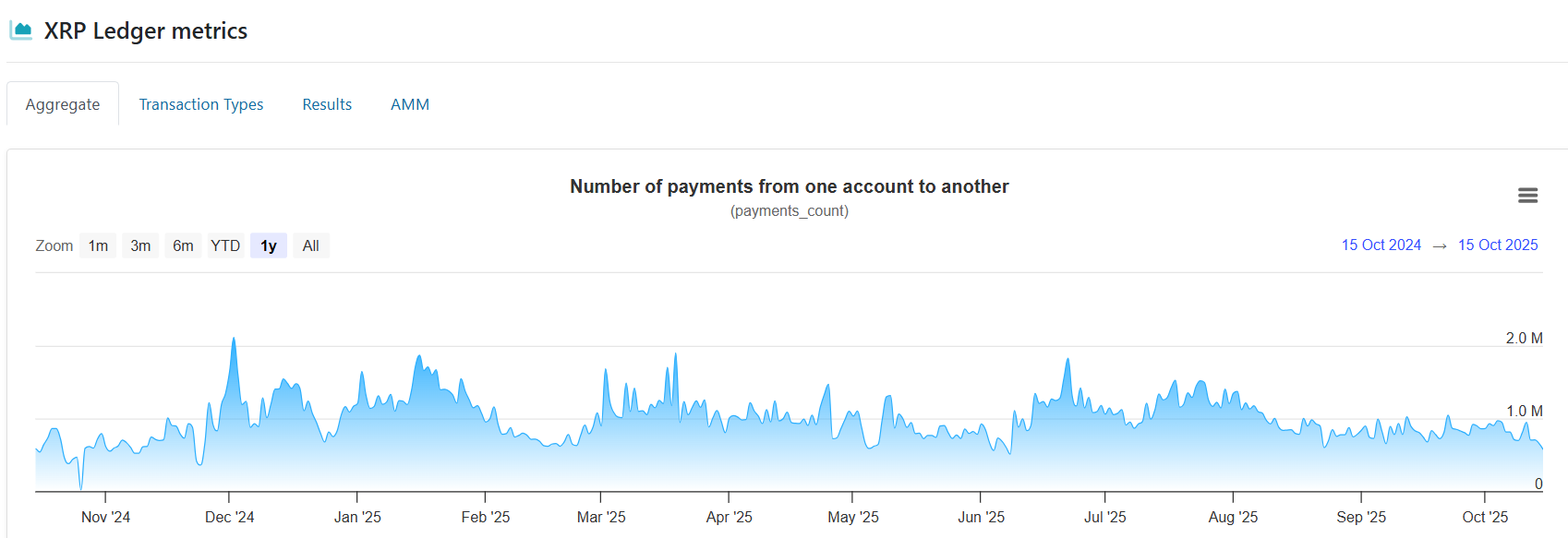 Október elejéhez képest, amikor az XRPL naponta rendszeresen több mint 1,5 millió tranzakciót kezelt, ez jelentős visszaesést jelent. Az XRP hálózat aktivitása és általános állapota eléggé megkérdőjelezhető ilyen szintű visszaesés mellett. A múltban a piaci hangulat és az elfogadás erőssége összefüggésbe hozható volt a láncon végrehajtott tranzakciók számával. Az aktivitás tartós csökkenése gyakran a felhasználói bázis ellaposodását, a likviditás csökkenését vagy a láncon végrehajtott elszámolások iránti igény csökkenését jelzi, amelyek mindegyike hatással lehet az árstabilitásra.