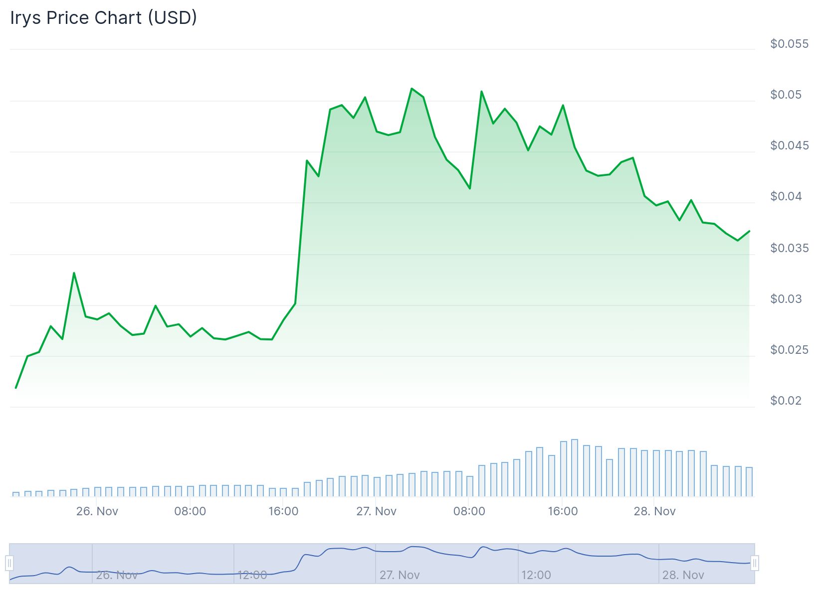 Az Irys (IRYS) egy kifejezetten nagy esélyes, tekintve, hogy 2025. november 25-én elindult az IRYS spot kereskedése a Coinbase tőzsdéjén, ráadásul a Binance már elindította az IRYS/USDT 20-szoros tőkeáttétteles örökös szerződéseket. A határidős ügyletek hozzáadása a kínálathoz még a spot kereskedés előtt egy coin esetén egyértelmű jelzés volt korábban, hogy közeledik egy Binance-listázás. A Coinbase-re kerülés és a Binance-várakozás meg is látszik a coin árfolyamán, aktuálisan 0,037 dolláron kereskedik, ami 7 nap alatt 70%-os emelkedést jelent.