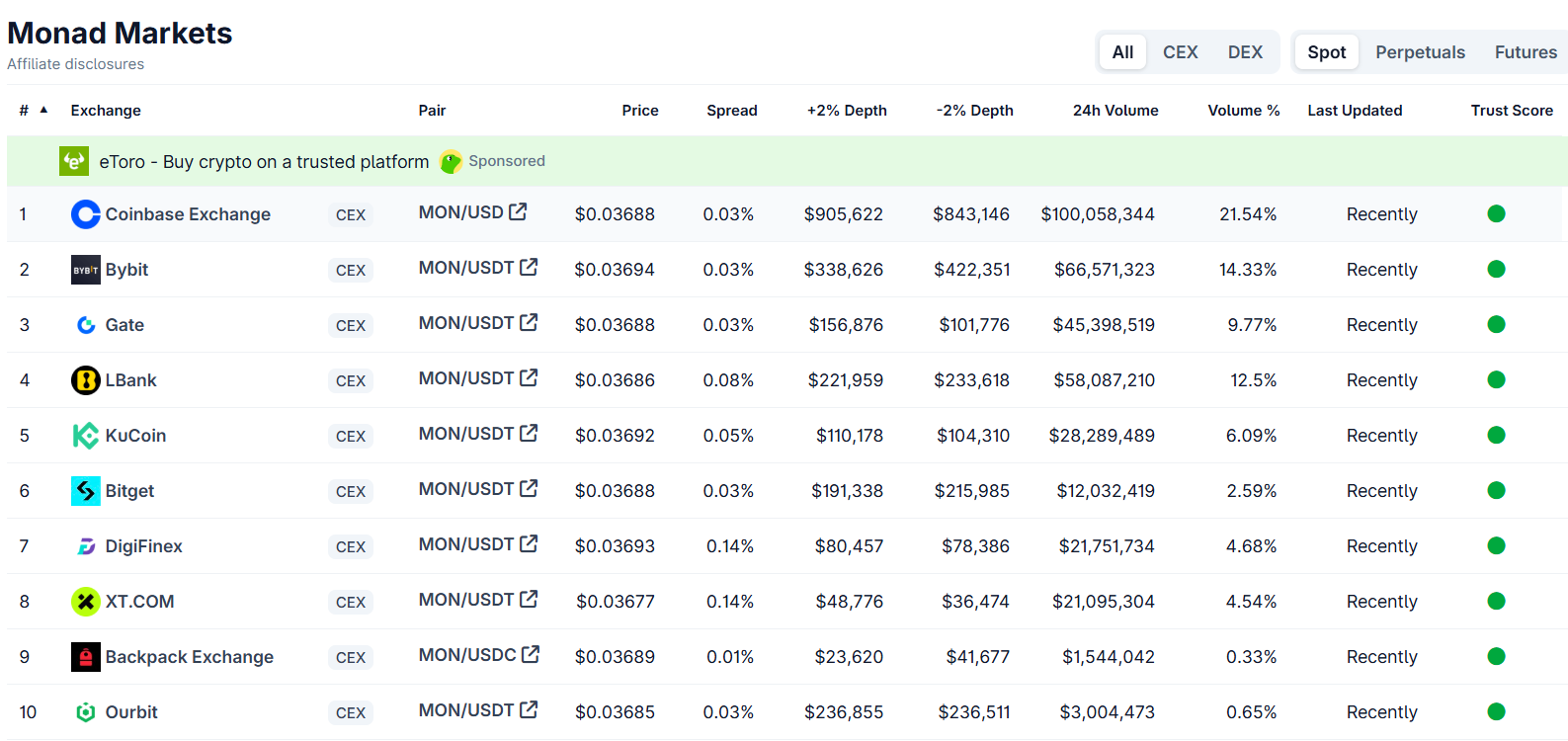 Ez a széles spot lefedettség azért fontos, mert a Binance most váltotta át a MON/USDT párt egy előpiaci örökös szerződésből egy standard USD-M örökös szerződésre. A Binance csak akkor vált át egy szerződést standard modellre, ha a spot index árfolyamot megbízhatóan le tudja kérni több nagy tőzsdéről. Ez megerősíti, hogy a MON tokennek mostanra elegendő külső likviditása van ahhoz, hogy stabil határidős indexet biztosítson.