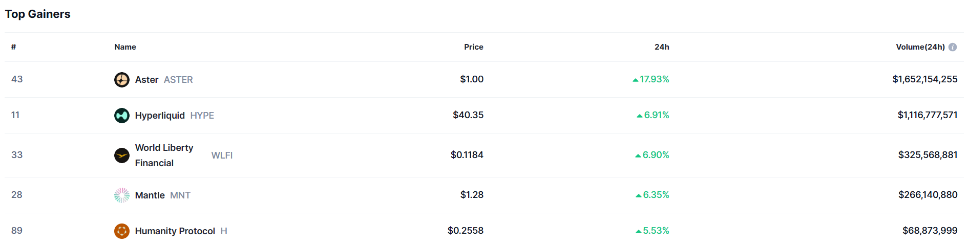 Az elmúlt 24 óra legnagyobb nyertese az ASTER kriptovalutája lett, amely 17,93%-os emelkedéssel zárta az elmúlt napot. Ez az a feltörekvő kriptovaluta, amely azután produkált nagyon szép teljesítményt, hogy a Binance-alapító CZ bejelentette, hogy saját tőkéből vásárolt elég szép mennyiségű coint. Jelentős a nagybefektetők aktivitása is, a piaci kapitalizációja pedig már 2 milliárd dollár felett jár már.