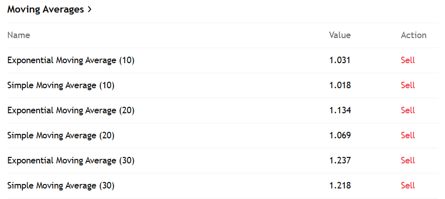 Viszont a ranglista előbb bemutatott első két helyezettjével szemben a Humanity indikátorai némileg pozitívabb képet festenek. Rövid távon még mindig gyenge, eladási jelzések dominálnak, hiszen 10 napos mozgóátlagok alatt van az ár. Közép és hosszú távon vételi jelzéseket ad a mozgóátlag – az árfolyam áttörte a 20, 30 és 50 napos mozgóátlagokat. Ez arra utal, hogy a trendforduló megtörtént vagy folyamatban van, és ha a rövid távú mozgóátlagokat is áttöri felfelé, az megerősítheti a bikás trendet.