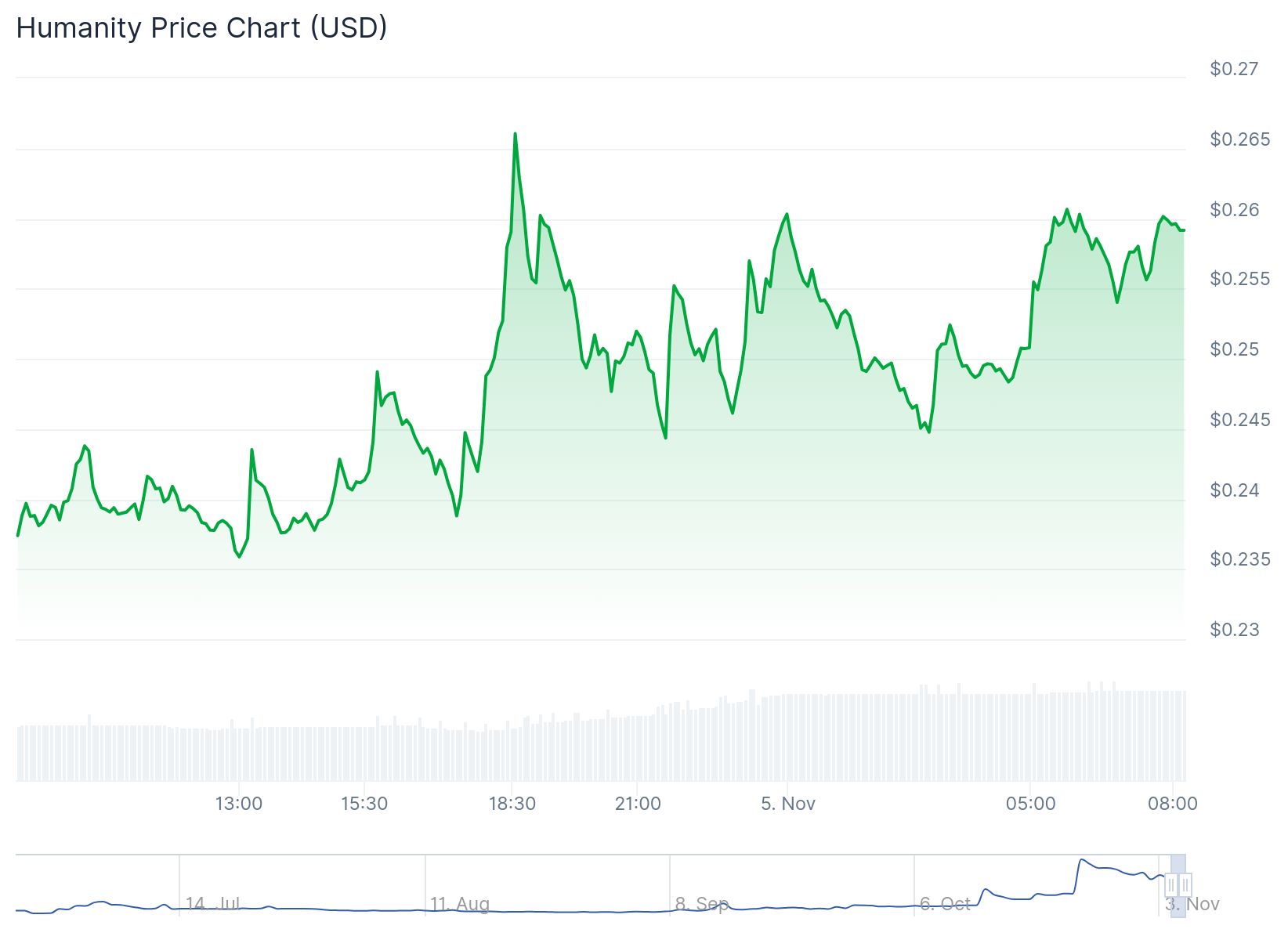 Az elmúlt 24 óra legjobbjainak dobogóján a harmadik helyre a Humanity Protocol ért be, ami 9,2%-os emelkedéssel zárta az elmúlt 24 órát. Piaci kapitalizációja 472 millió dollár fölé nőtt, bár 11 nappal ezelőtti 0,3884-es árfolyamcsúcsához képest azért még mindig jelentős elmaradásban van a 0,2587 dolláros árával.