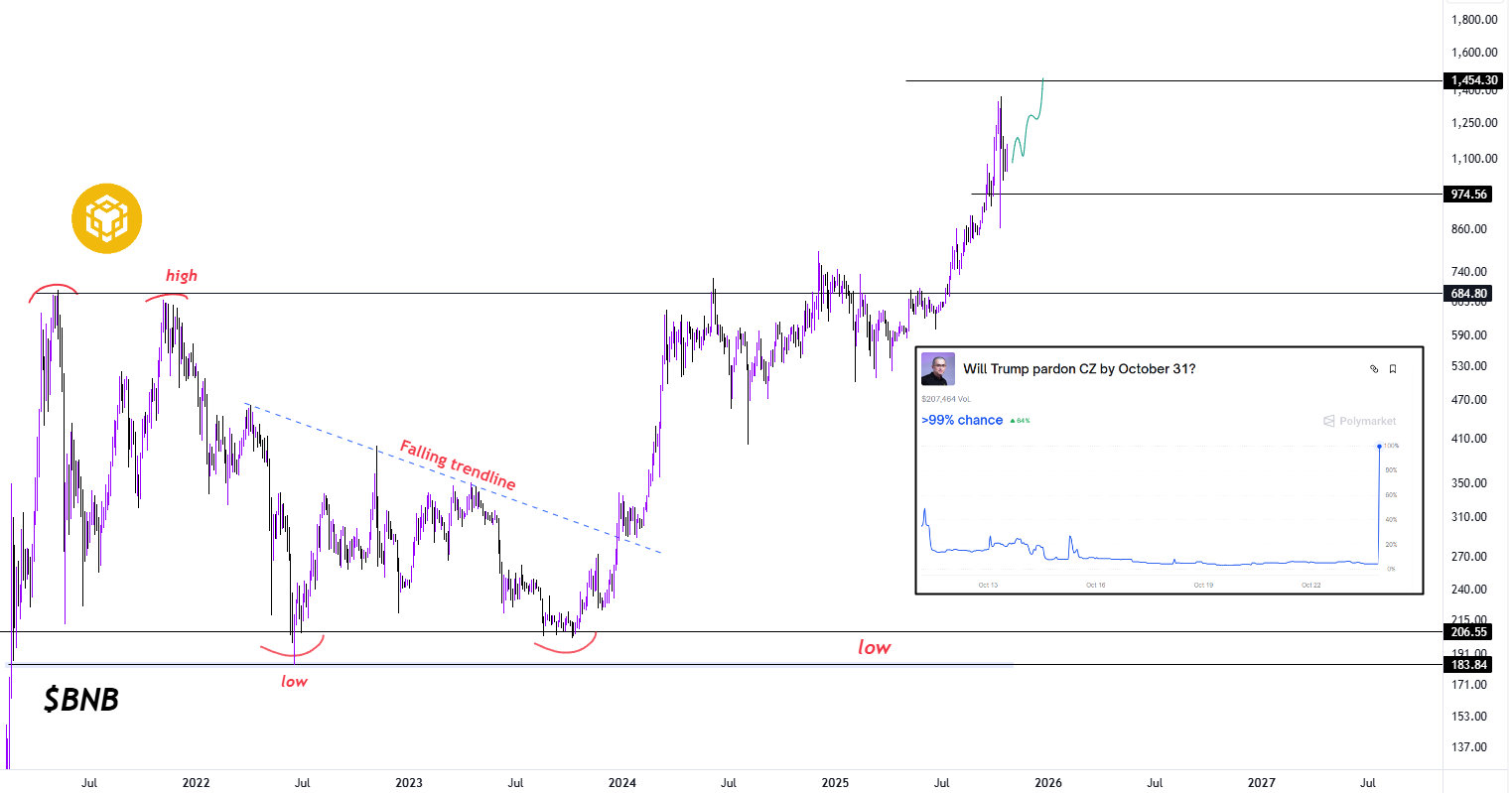 (BNB) árfolyama egyébként 1077 dollárról egészen 1160 dollárig emelkedett mindössze 30 perc alatt. Most 1125 dollár körül kereskedik, volumene pedig továbbra is kiemelkedő. Nemrégiben listázásra került a Coinbase és a Robinhood platformján is, azonban ennek a hírnek egyelőre nagyobb a füstje, mint a lángja.