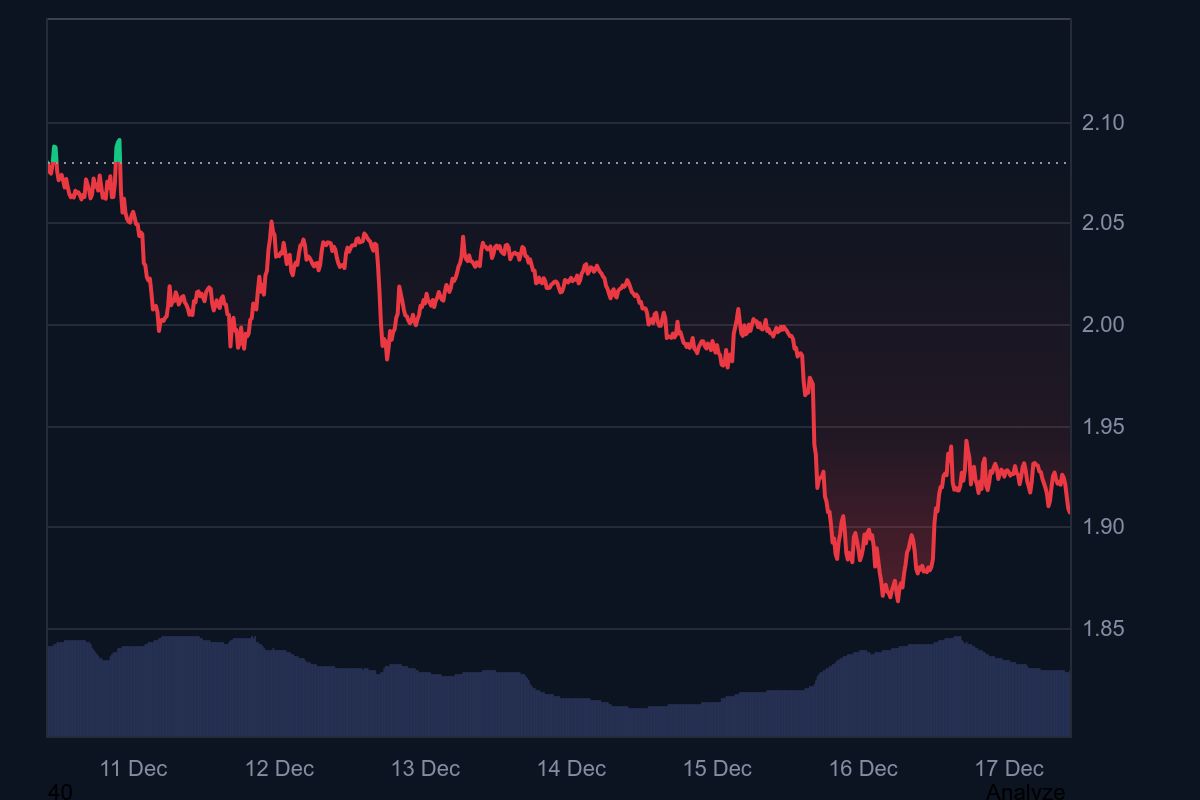 Az XRP árfolyama ismét 2 dollár alá esett, miután egy több éve inaktív pénztárca hatalmas eladást hajtott végre, és ezzel erős eladói nyomást helyezett a piacra. A kriptovaluta ára jelenleg 1,9 dollár körül mozog, ami közel 6%-os csökkenést jelent egyetlen nap alatt. A piaci gyengülés a bitcoin és az ethereum árfolyamának visszaesésével párhuzamosan zajlik, de az XRP esetében egyértelműen belső, láncon belüli tényezők is súlyosbították a helyzetet.