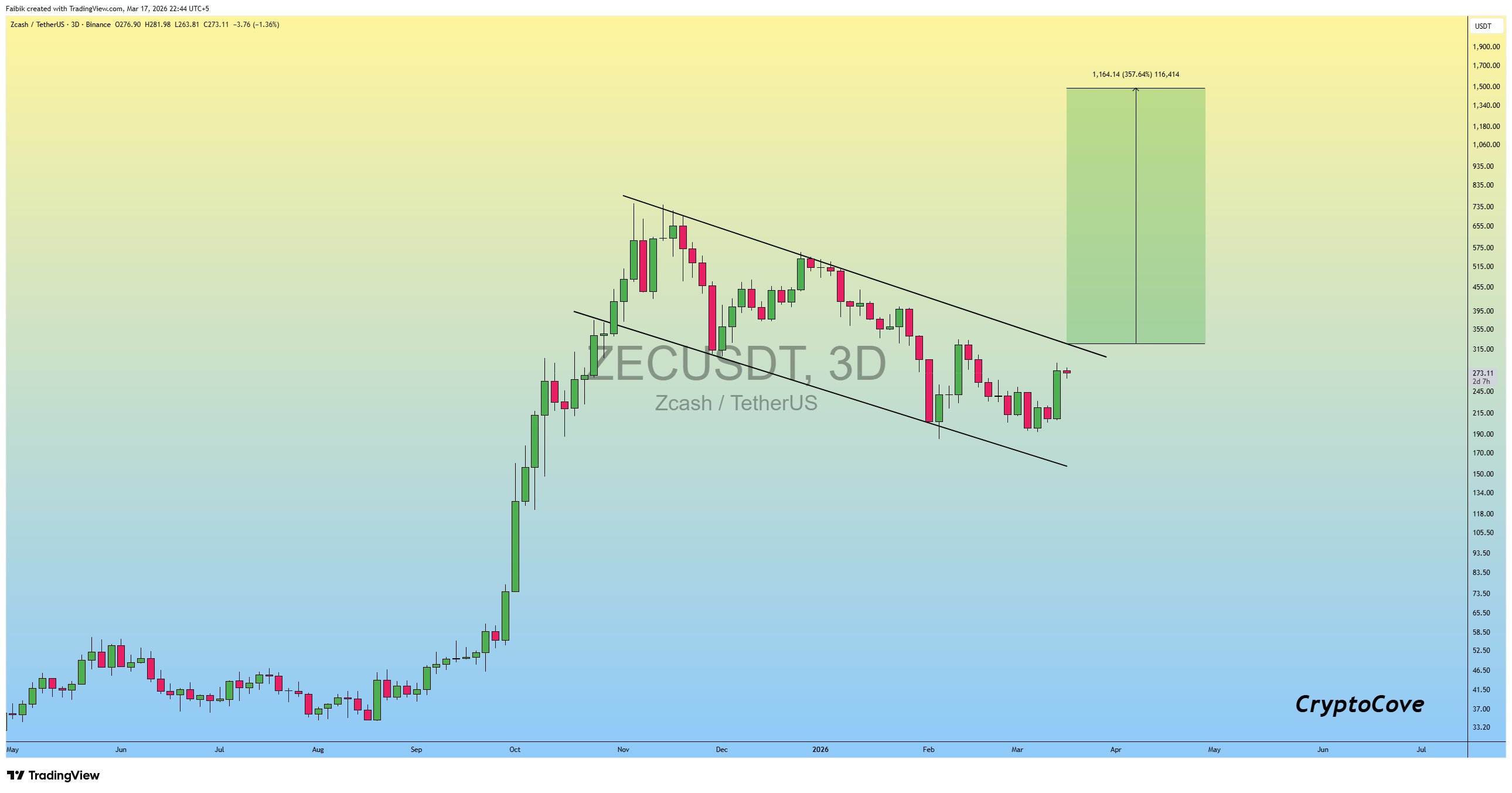 A ZEC technikai elemzése akár 300%-os növekedést is rejthet, forrás: X/CryptoCove